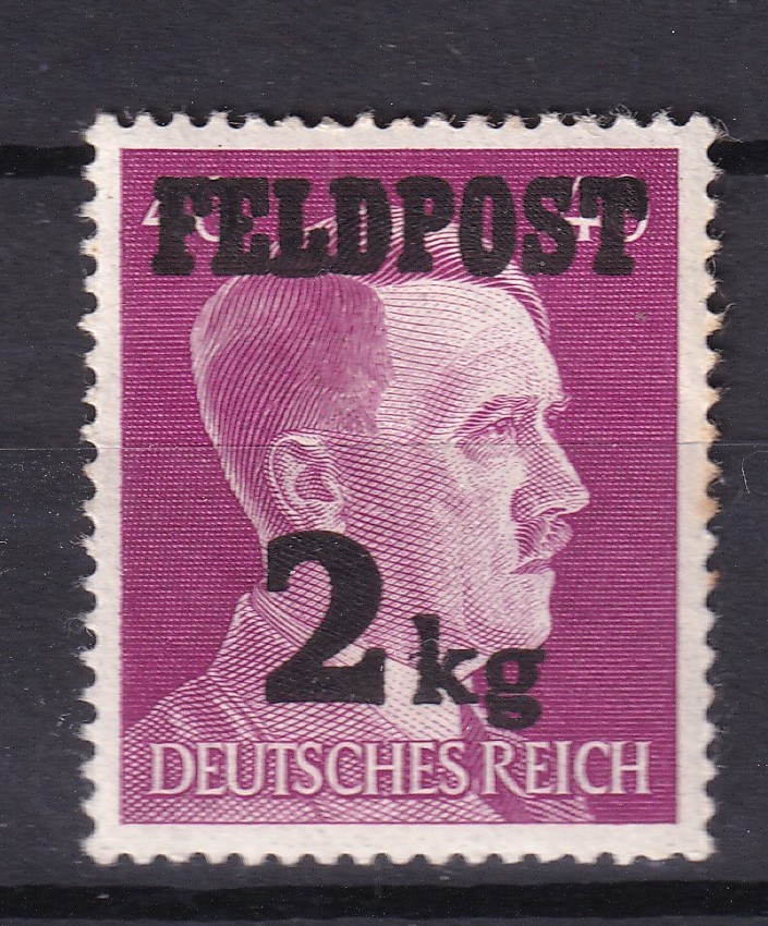 Dette frimærke er et eksempel på de overtrykte udgaver fra Deutsches Reich, som blev tilpasset militære behov under Anden Verdenskrig. Grundmærket stammer fra den almindelige portrætserie, trykt i store oplag, men det er overtrykket “FELDPOST” samt vægtangivelsen “2 kg”, der gør denne variant samlermæssigt interessant.